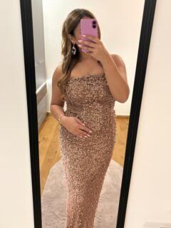 Ich war sofort verliebt in das Kleid Eyla! Die Farbe ist so ein besonderer Braunton – warm, elegant und irgendwie außergewöhnlich. Die Pailletten und Perlen funkeln wunderschön, aber trotzdem wirkt das Kleid nicht kitschig. ✨