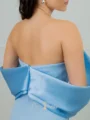 Das Inaya Dress in zartem Hellblau verkörpert Anmut und Leichtigkeit. Vereinzelte Perlenstickereien verleihen feinen Glanz, während die breiten Satinträger, die locker vom Oberarm fallen, dem Kleid einen verspielten, fast trägerlosen Look geben. Dezent, elegant und einfach wunderschön – perfekt für sanfte, feminine Auftritte.