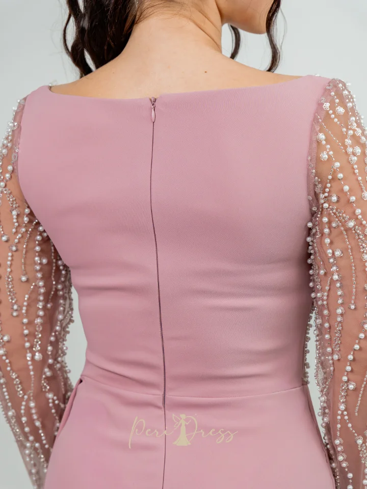 Das Mira Dress in zartem Rosa vereint Romantik und Moderne. Feine Perlen zieren den Stoff, während die langen Ärmel aus Tüll Leichtigkeit verleihen. Ein dezenter Frontschlitz sorgt für einen eleganten, femininen Akzent. Perfekt für besondere Abende, an denen du auffallen, aber trotzdem stilvoll bleiben möchtest.